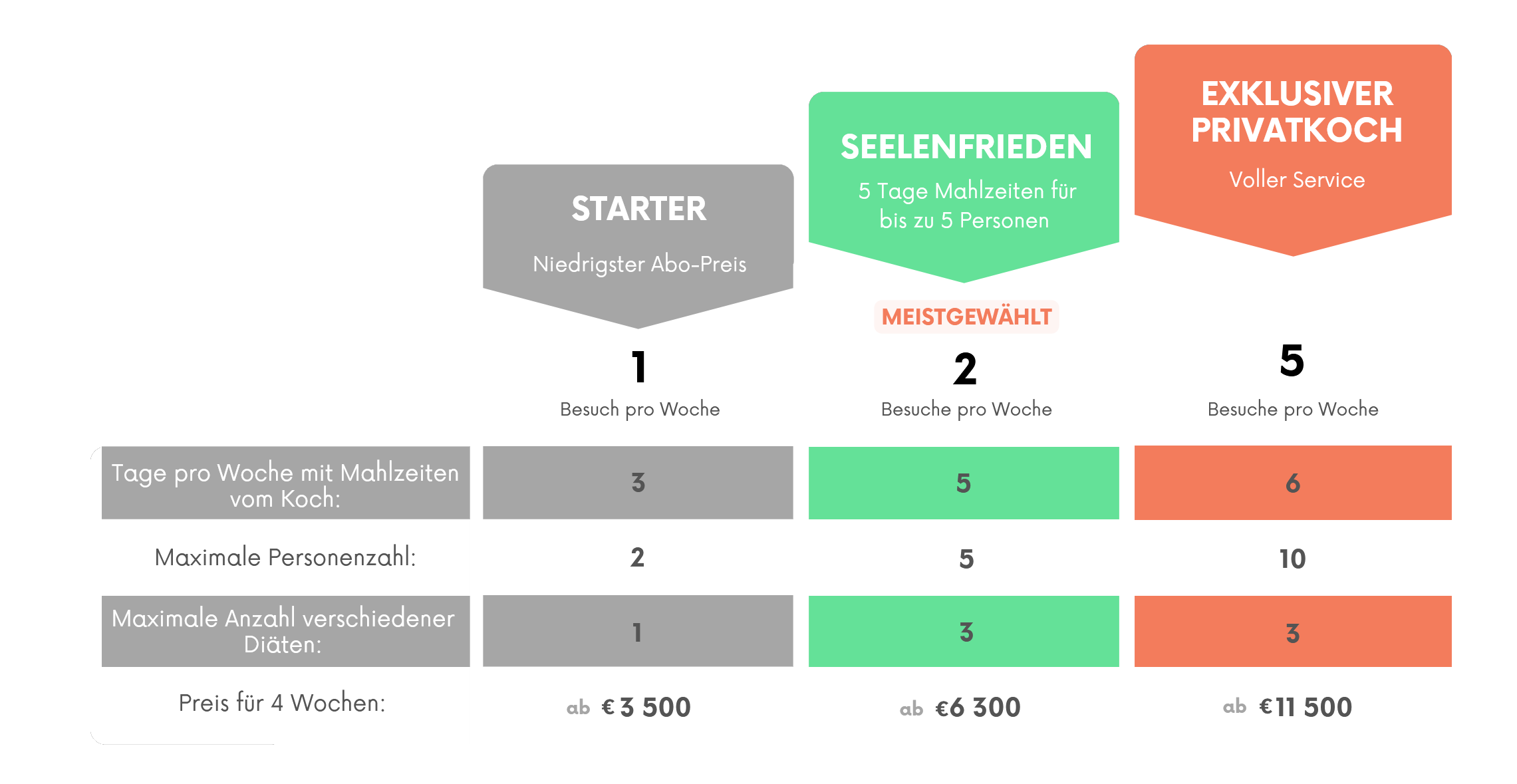 - Sie engagieren einen privaten Koch und zahlen bei Ulala Chef jeden Monat im Voraus.